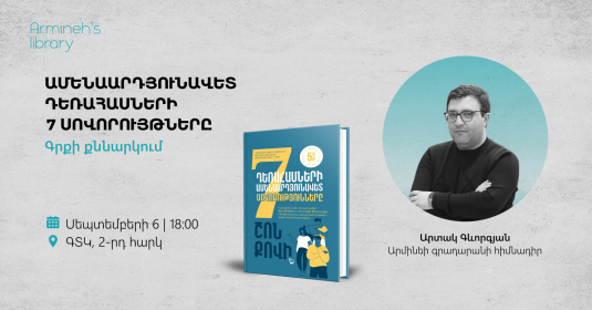 Dear readers, the next book discussion at Armine's Library will take place on September 6 at 6:00 PM.